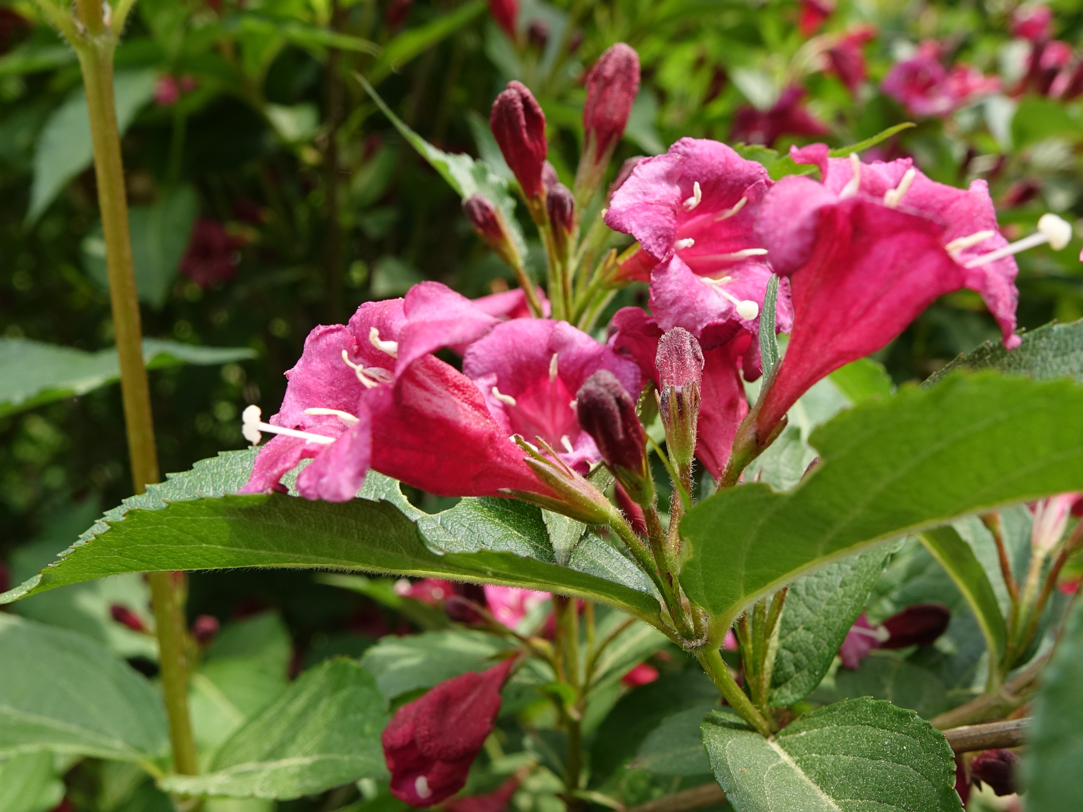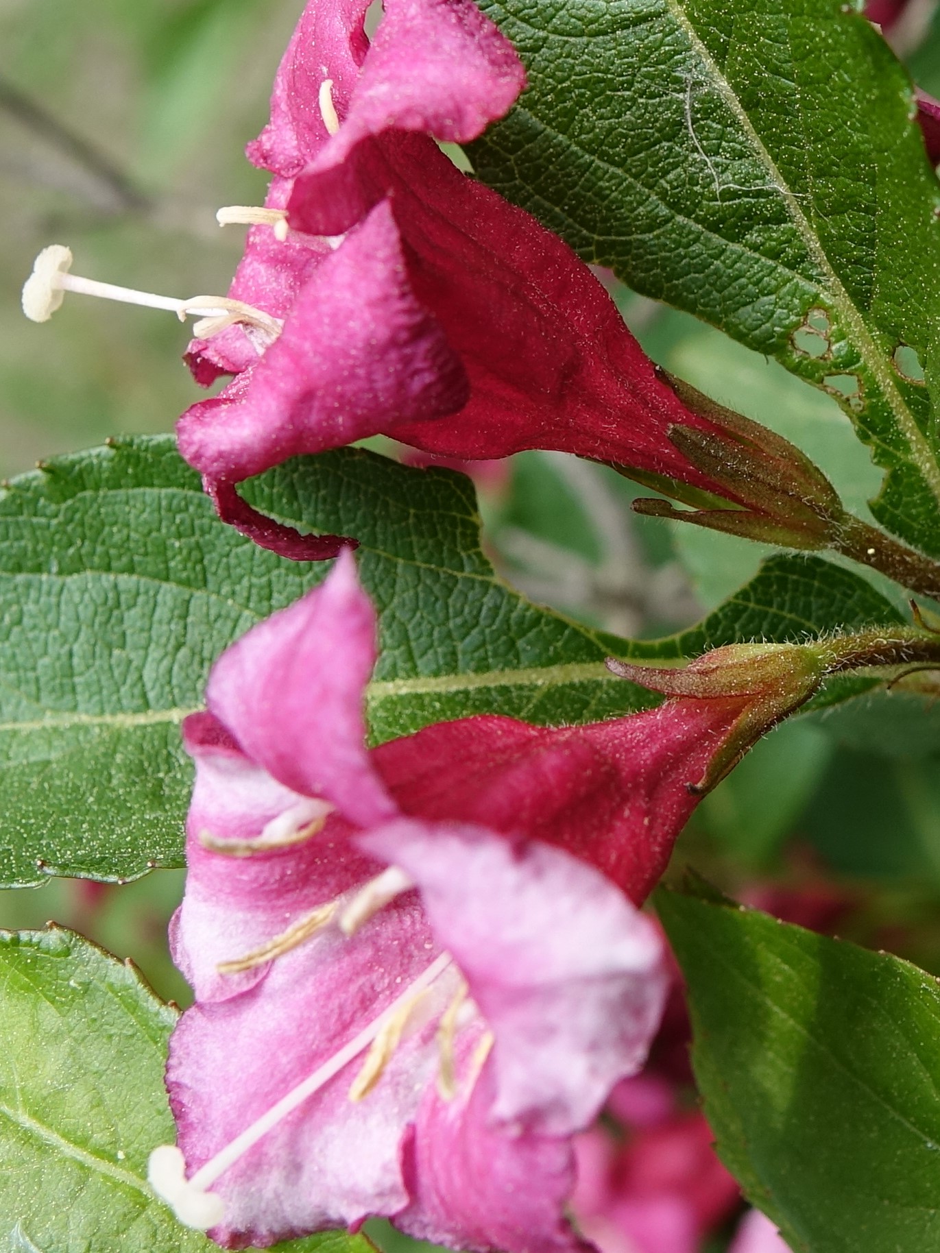 골병꽃나무(Weigela hortensis)는 꽃 색깔이 밝은 적자색이고, 꽃받침이 병꽃나무처럼 밑까지 완전히 갈라졌다.