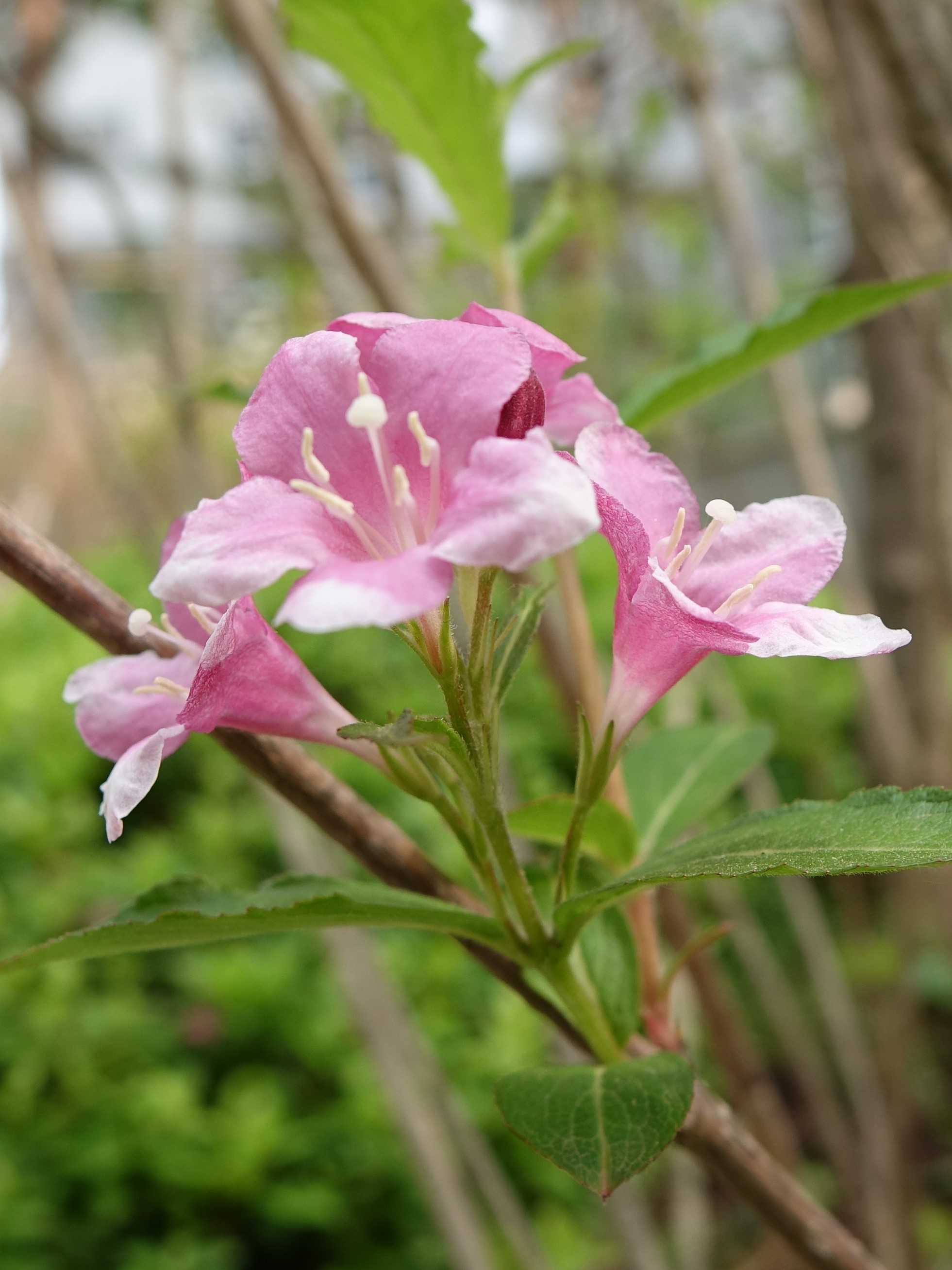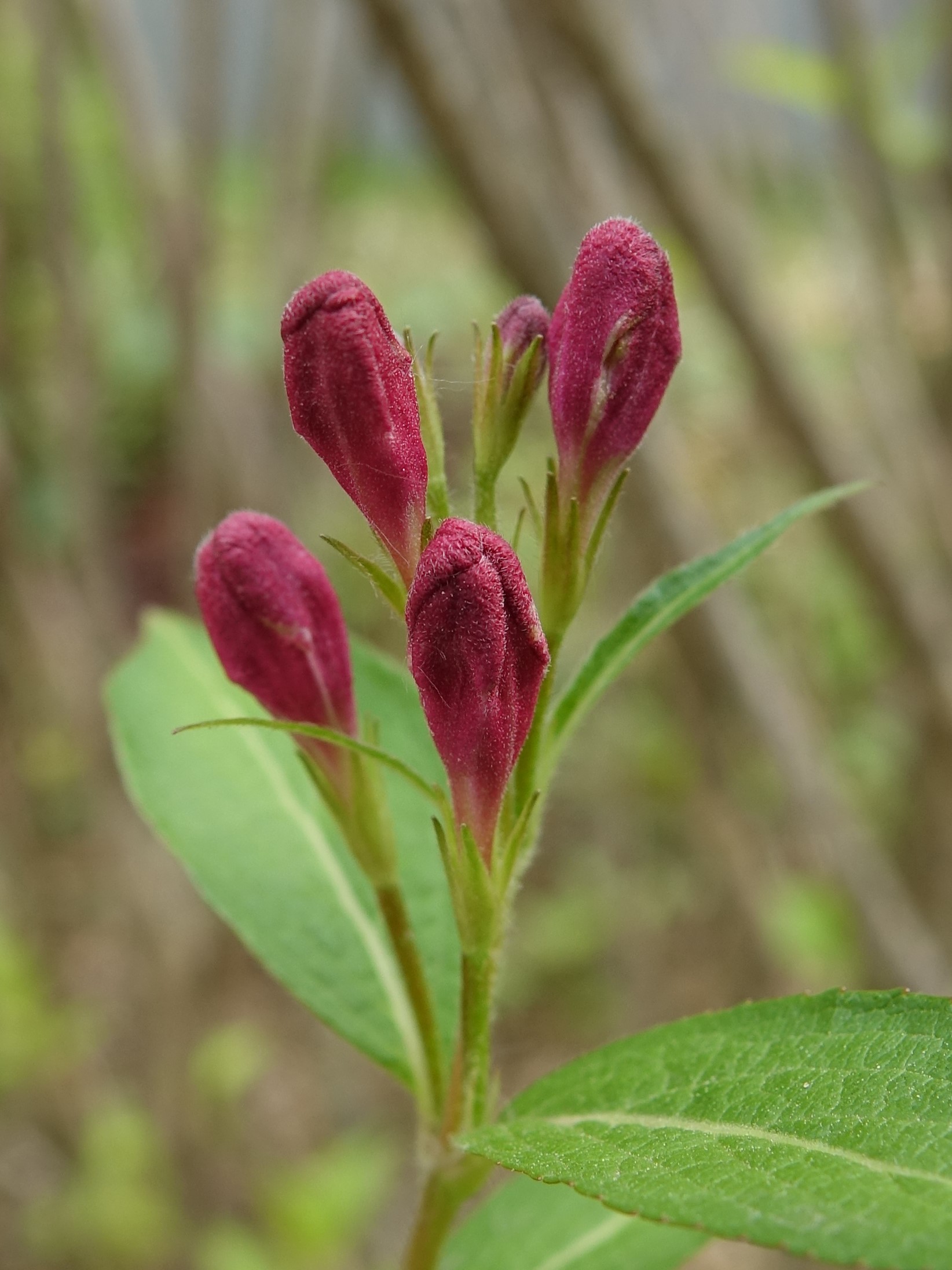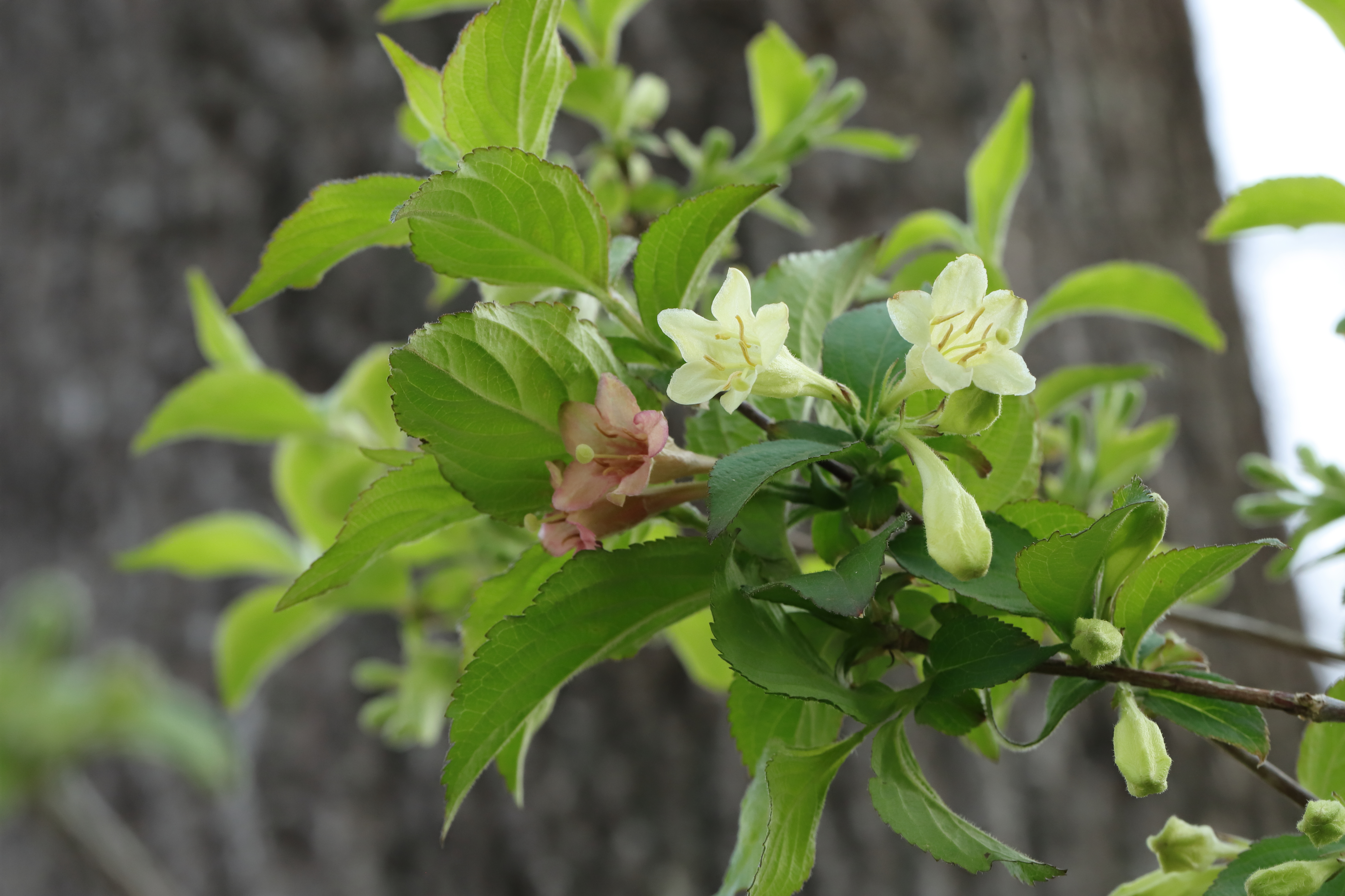 병꽃나무(Weigela subsessilis)는 알아보기 쉽다. 꽃이 처음에는 녹황색이었다가 사나흘이 지나면 붉은색으로 변한다. 그래서 그 두 가지 색의 꽃이 함께 달려 있다. 꽃받침은 가늘면서 밑까지 완전히 갈라졌다.