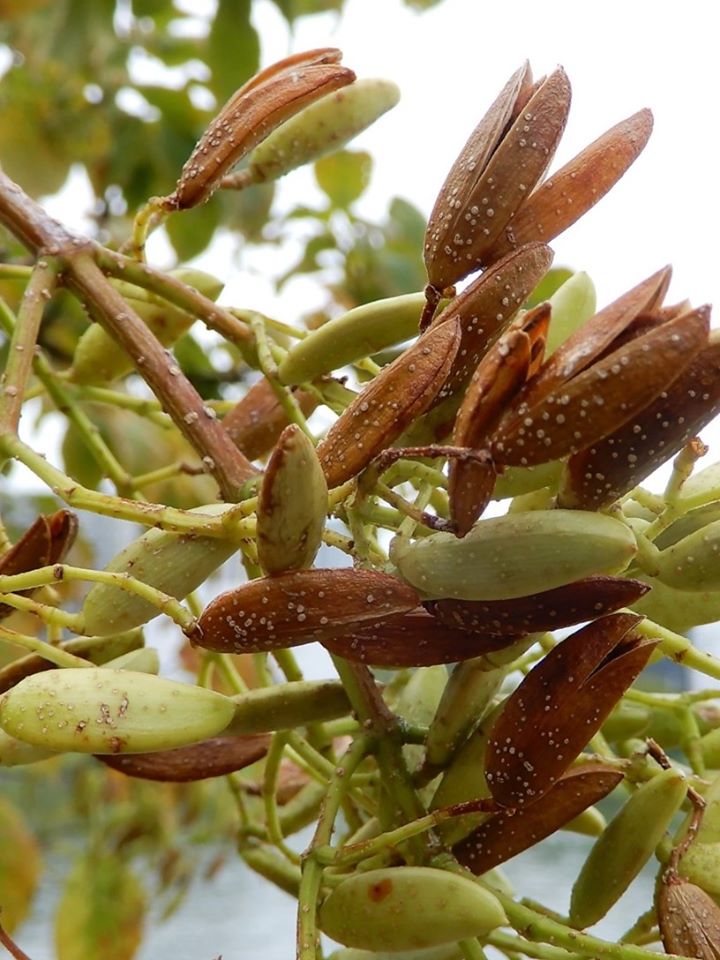 9∼10월에 성숙하는 열매는 튀는열매(삭과)로, 긴 타원형에 약간 납작하고 표면에 좁쌀보다 작은 자잘한 돌기들이 나 있다. 완전히 성숙하면 갈색으로 변한 뒤 껍질이 말라 두 쪽으로 갈라지고 씨앗이 바람 등에 의해 흩어진다.