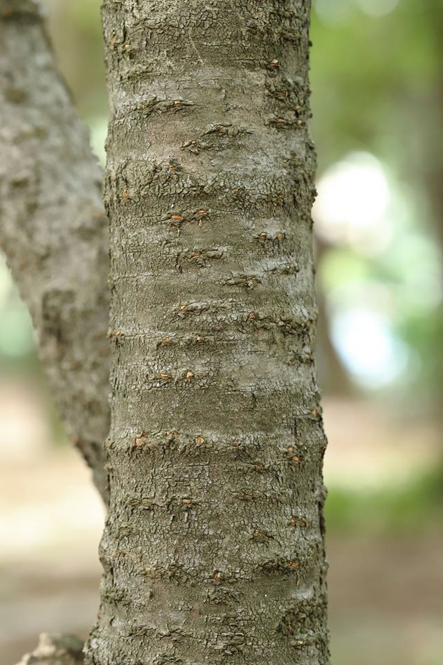 수피는 회갈색 내지 흑갈색으로, 회색 가로무늬와 가로로 긴 껍질눈이 있고, 바탕이 매끈한 편이다. 수령이 많아지면 겉이 세로로 갈라진다.