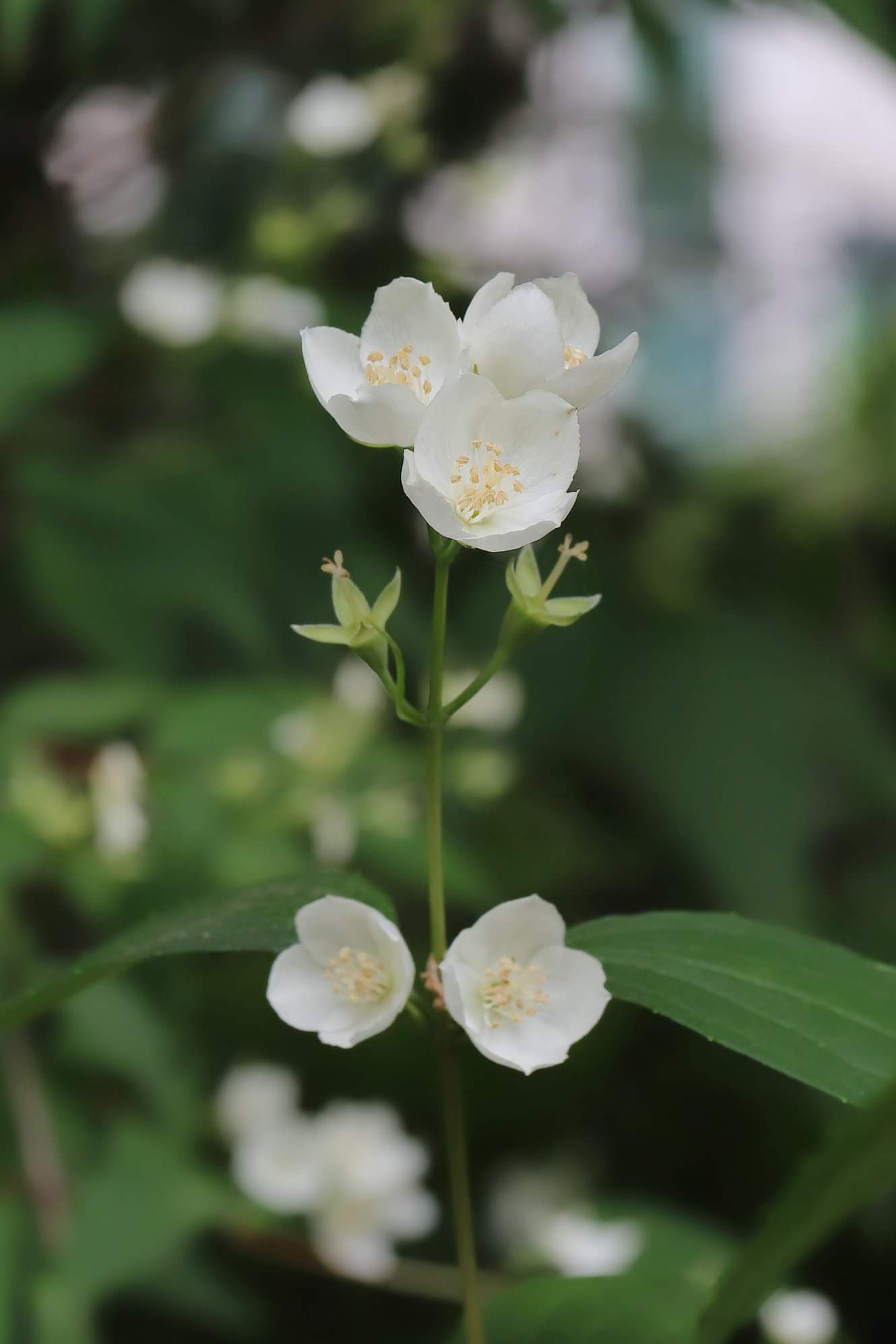 고광나무는 우리나라와 중국 동북부가 원산지인 낙엽 활엽 떨기나무다. 눈길을 끄는 화려한 꽃들이 물러가고 짙은 녹음이 바야흐로 우거지는 5월 하순부터 거의 한 달 동안 맑고 단정한 꽃을 총상꽃차례로 피운다. 사방에 나뭇잎, 풀잎이 무성하고 새들의 지저귐만 뜸하게 들려오는 호젓한 산속에서 저 혼자 꽃을 하얗게 피운 고광나무를 보노라면 김소월의 시 <산유화>가 떠오른다.