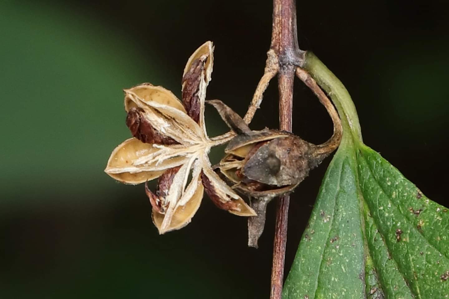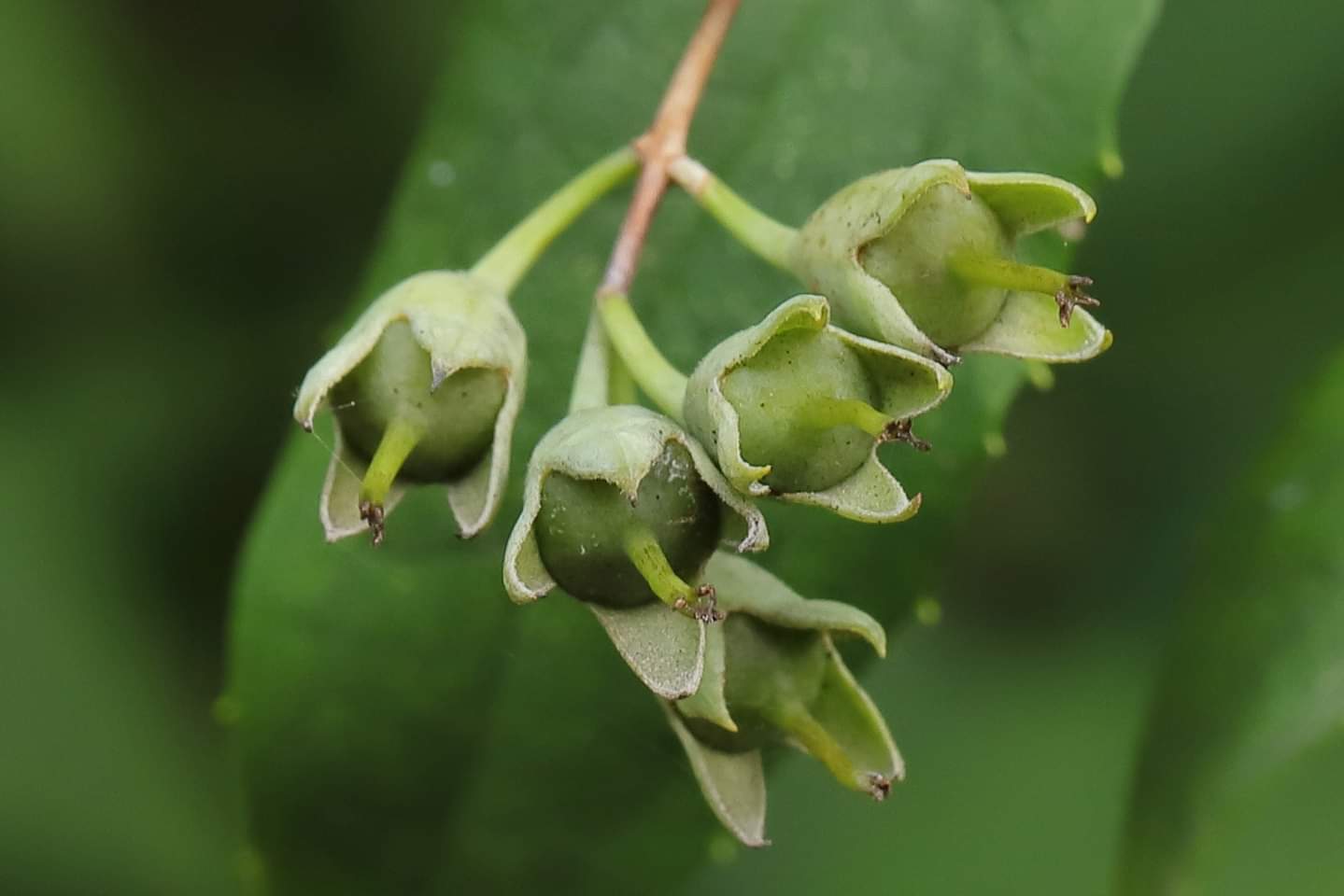 꽃받침조각은 다른 나무와 구분되는 뚜렷한 특징이 있다. 꽃이 피었을 때 연초록색이나 황록색이던 4개의 꽃받침조각은 꽃이 지고 난 뒤부터 점차 녹색으로 변하며 열매의 성장에 맞춰 조금 더 크게 자란다. 완두콩만 한 타원형 튀는열매(삭과)를 둘러싼 이것은 마치 갑옷의 경갑(頸甲, 목가리개)처럼 보인다. 커가는 열매를 보호하기 위해 빳빳한 가리개를 일부러 둘러친 것 같다.