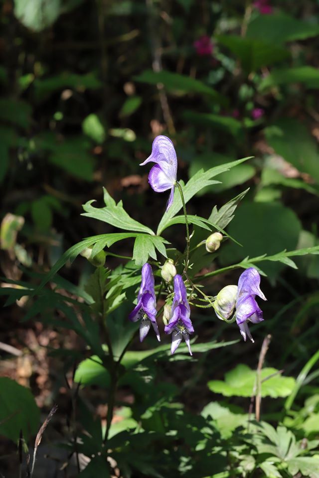 이 정보로 보면 세잎돌쩌귀(Aconitum jaluense var. triphyllum)가 맞다. 미나리아재빗과 투구꽃속이다. 9월에 청자색(靑紫色) 꽃이 핀다.