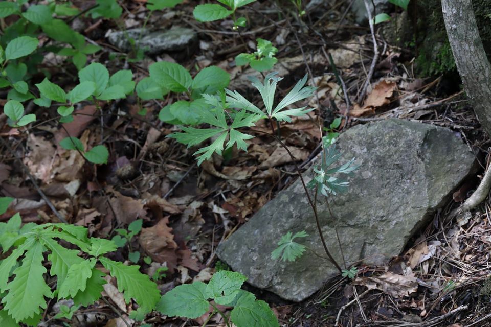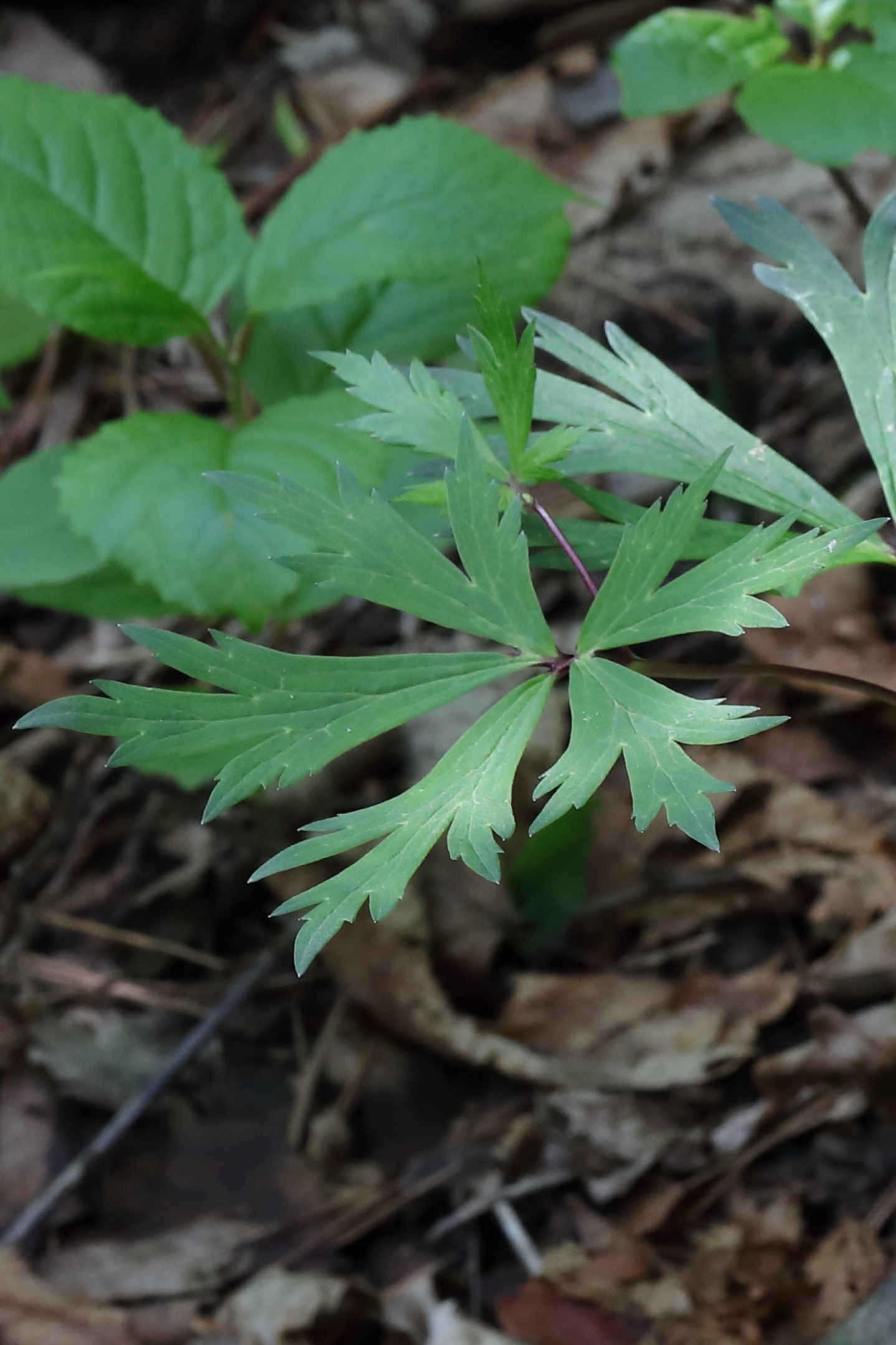 “잎은 잎자루가 길고 3갈래로 밑까지 완전히 갈라진다[全裂, 전열]한다. 양쪽 잎조각은 다시 2개로 갈라지고 가장자리에 2~3쌍의 끝이 뾰족한 톱니가 있으며...”