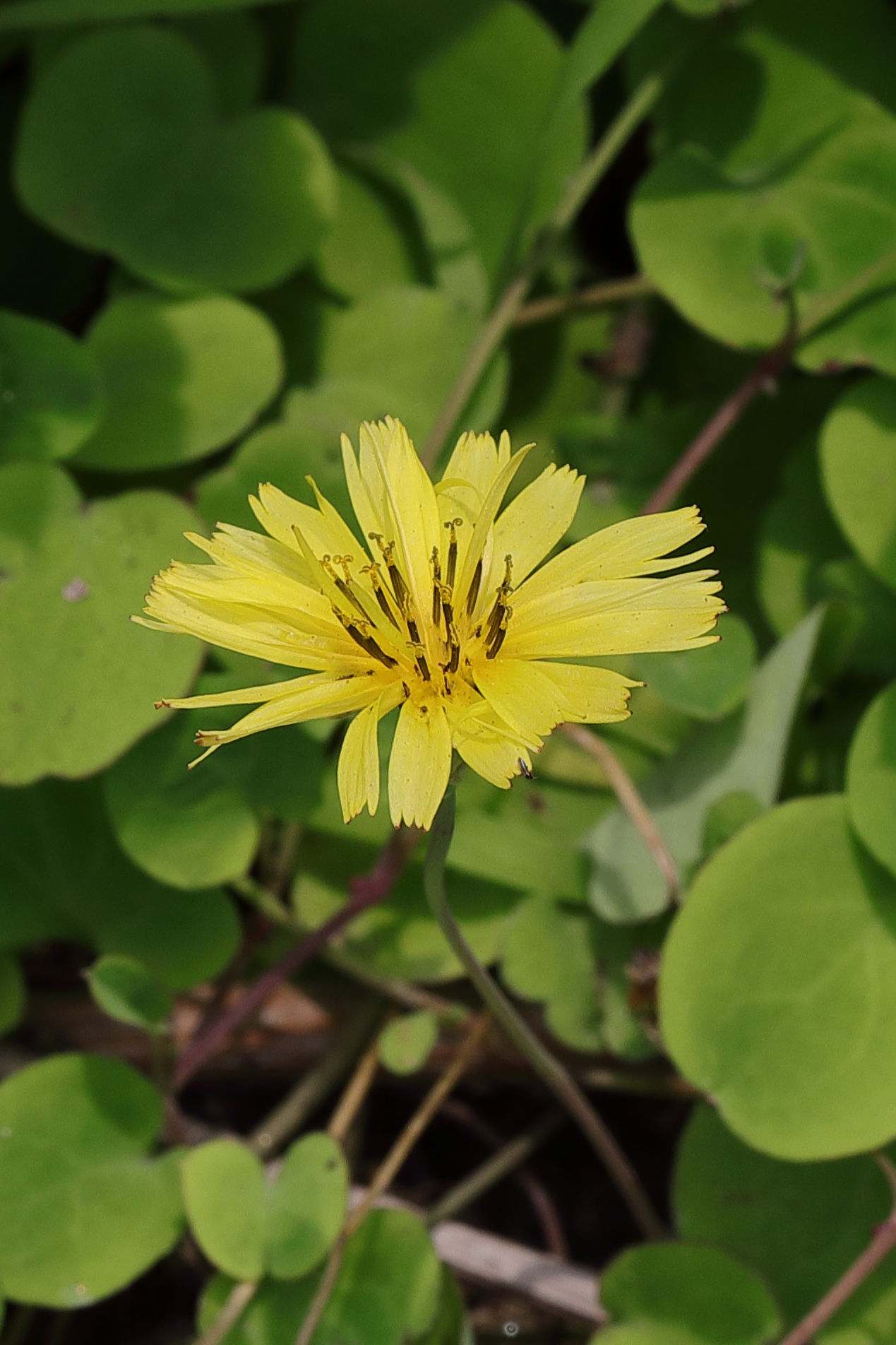 땡볕에 딱 하나 피었다. 좀씀바귀. 잎은 땅에 깔렸고 솟은 꽃줄기 끝에 노란 꽃. 강렬한 햇빛. 아, 목마르다.