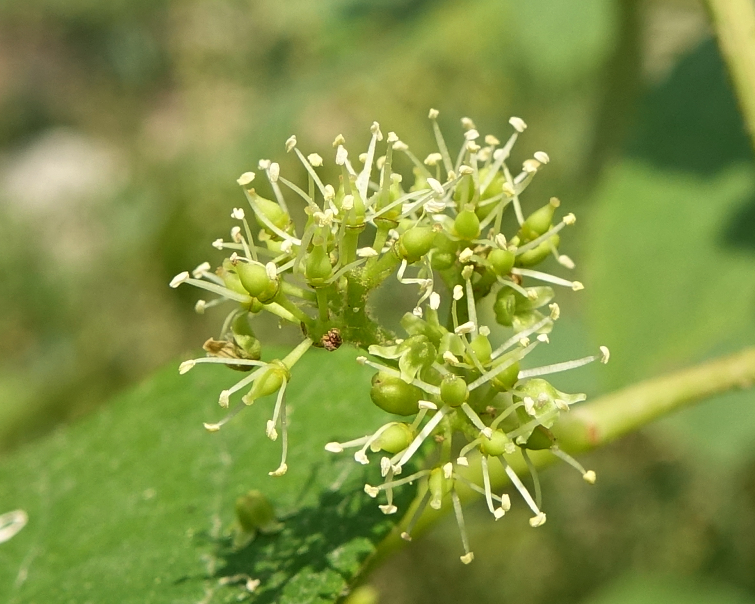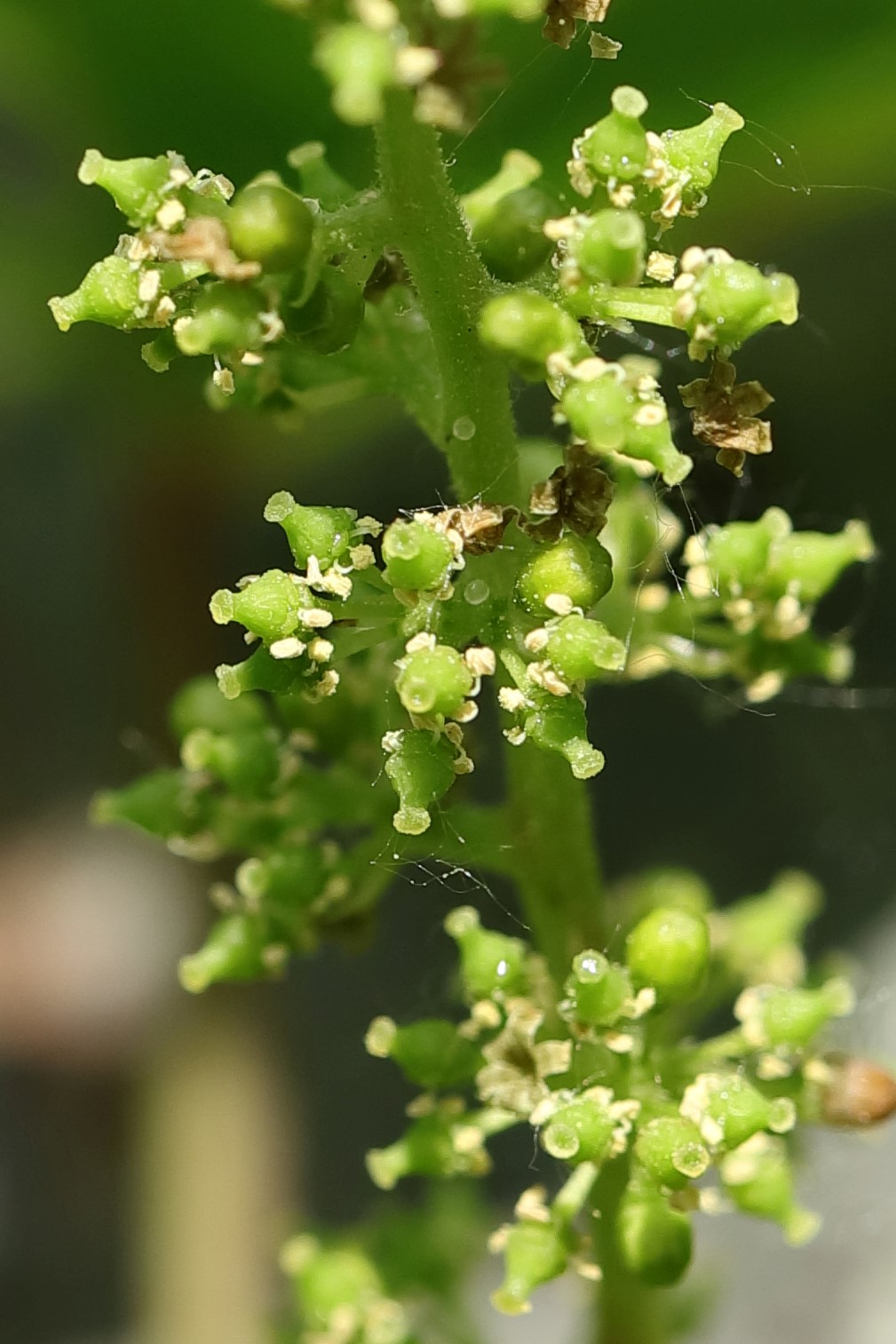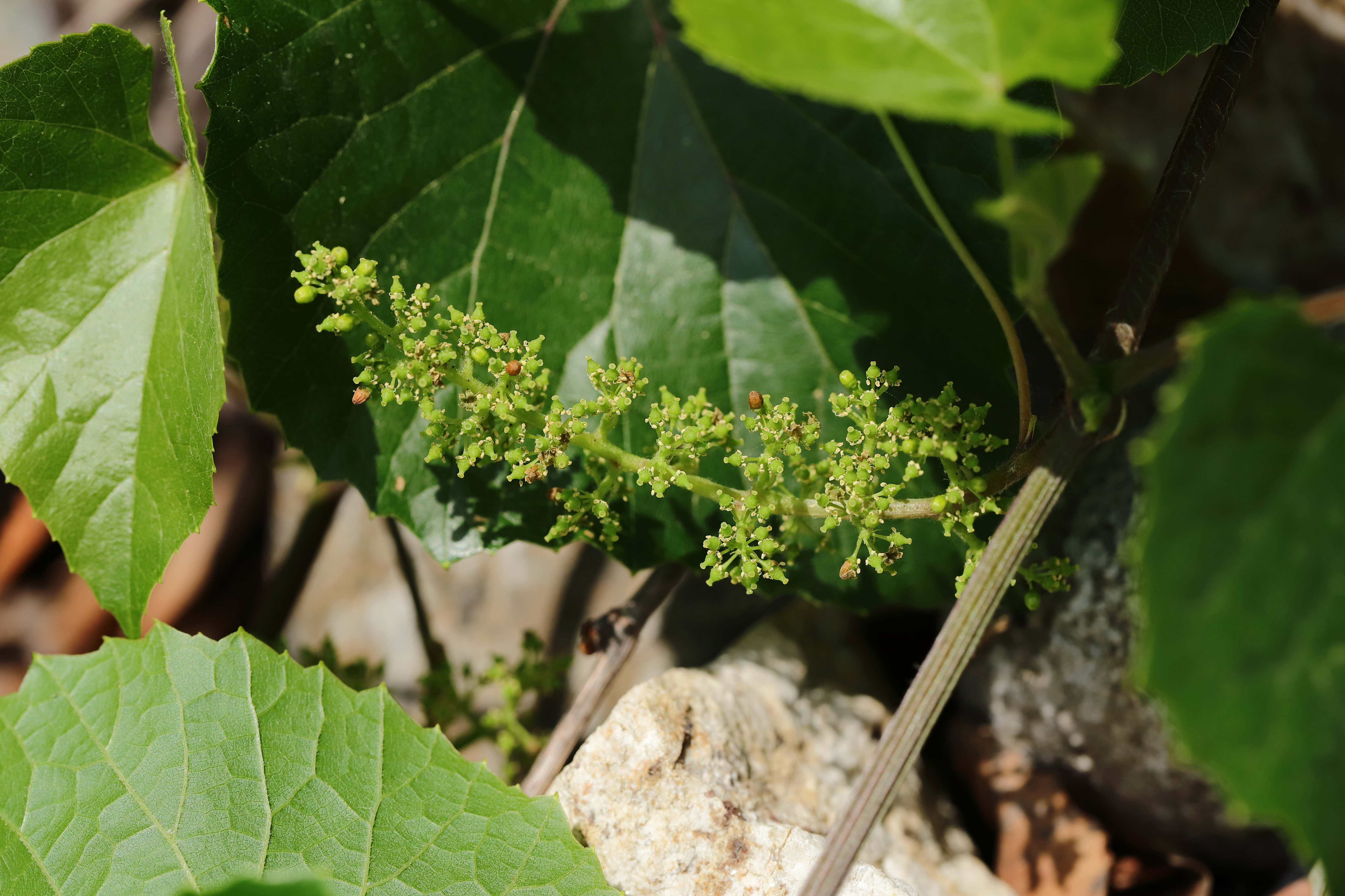이와 달리 머루는 암수딴그루다. 암꽃을 피우는 암나무, 수꽃을 피우는 수나무가 따로 있다. 산에서 잎만 무성하고 열매가 달리지 않은 머루를 본다면 그 덩굴나무는 수나무일 가능성이 높다. 암나무 혼자 열매를 맺기도 하지만, 그 경우 열매가 아주 부실하다. 기다란 송이에 머루가 고작 한두 개 달린다. 그나마 눈물 겨운 노력 끝에 거둔 결실이다. 머루 암꽃을 보면 암술 주위에 보잘것없는 수술이 5개 있다. 실제로 꽃가루받이가 이루어지지 않았을 것이다. 일종의 가임신이라 생각된다. 한두 개 열매가 맺혔고 그 안에 씨앗이 들었으나, 씨눈(배, 胚)이 없는 씨앗일 뿐이다. 당연히 그 씨앗은 발아하지 못할 것이다.