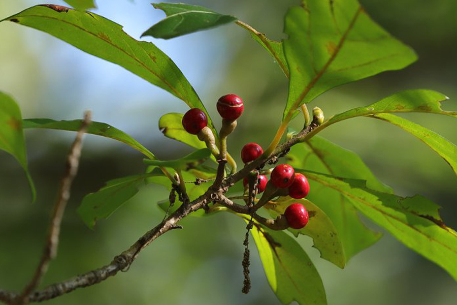 충청 이남 기후가 따스한 남부 지방에 자라는 낙엽 활엽 떨기나무(관목) 또는 작은큰키나무(소교목)다. 높이 5미터쯤 자란다. 암꽃과 수꽃이 암나무와 수나무에서 따로 피는 암수딴그루다. 꽃은 4~5월에 노랗게 피고, 열매는 10월에 붉게 익는다.