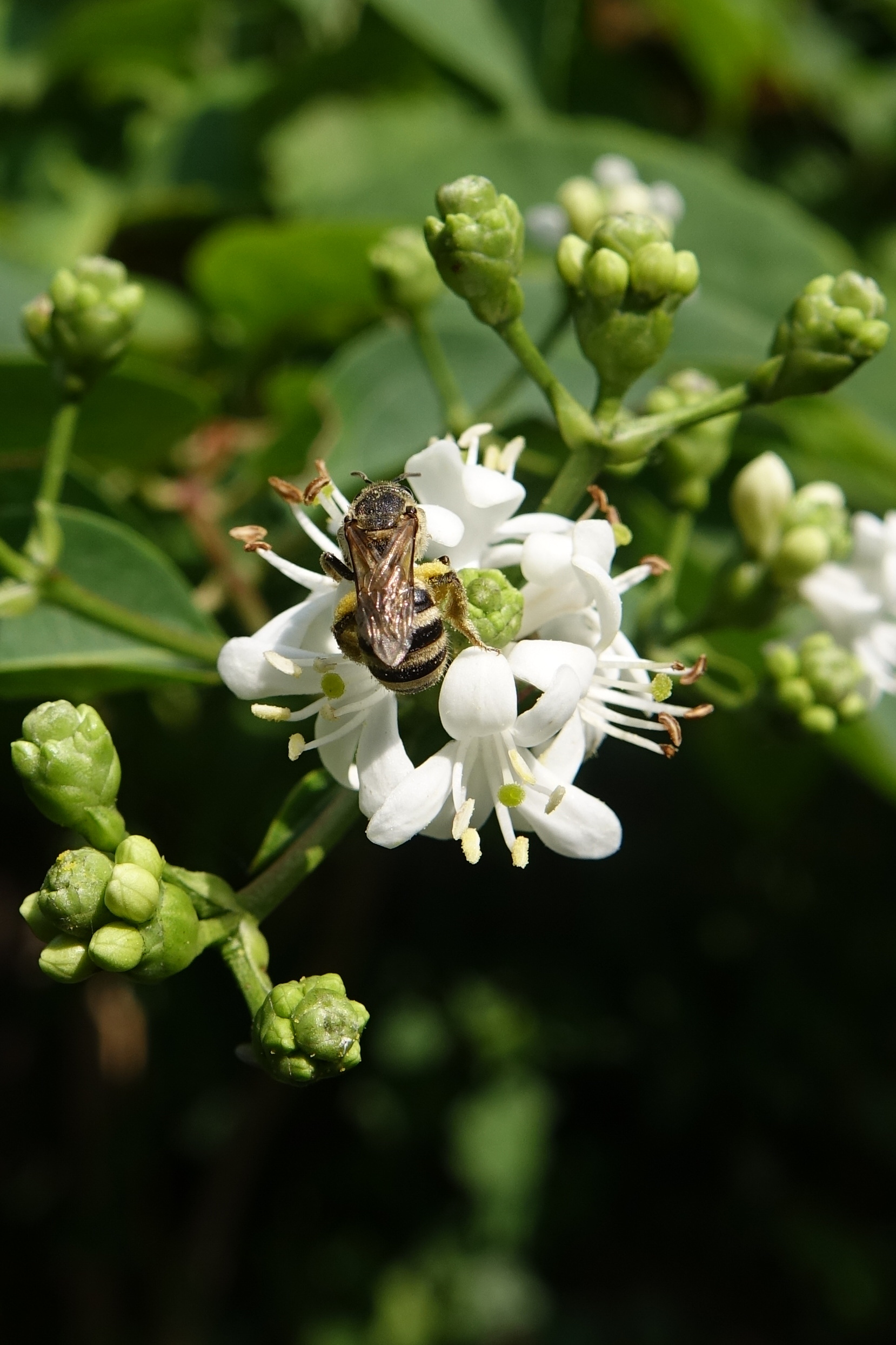 칠자화는 한 달이라는 긴 시간 동안 흰 꽃을 피운다. 여러 꽃이 한꺼번에 피어 오래 유지되는 것이 아니라, 한쪽에서 먼저 핀 꽃이 질 때 다른 쪽에서 잇따라 꽃이 피는 식이다. 꽃은 꽃부리가 5개로 갈라진 통꽃으로 1개의 암술과 5개의 수술을 지니고 있다. 꽃에는 꽃꿀이 많아 벌과 나비가 많이 모인다.
